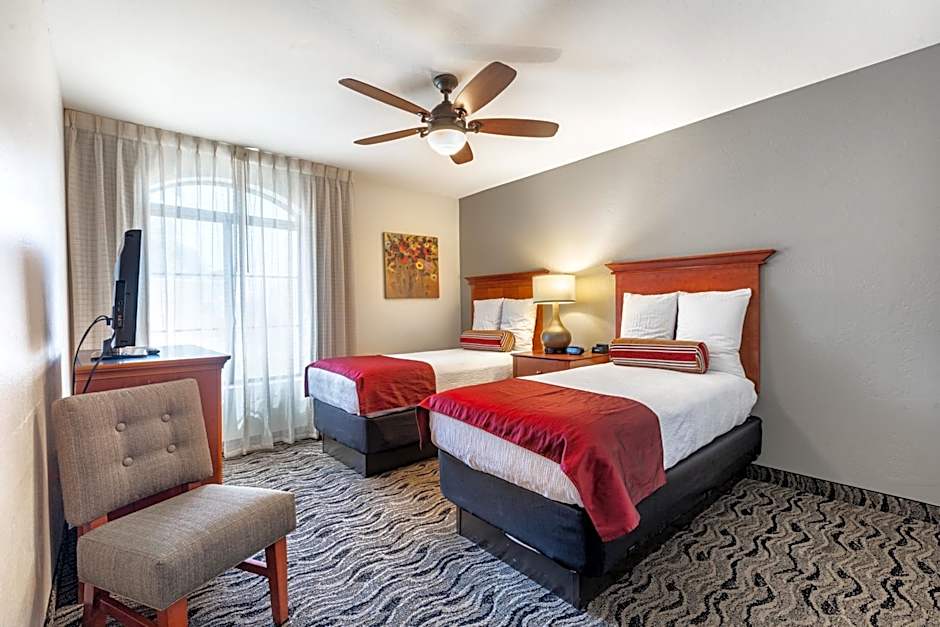 The Seville Villa’s open floor plan highlights wood beams, vaulted ceilings, and plenty of sunlight in the great room as well as the outdoor enjoyment of a private patio. With 1100 sq. ft. of living space on one level, this villa sleeps six people with a king bed, two twin beds, and a queen sleeper sofa. Whether you’re preparing a meal for family and friends or a romantic dinner for two, the fully equipped kitchen includes everything you need. This villa also features a washer/dryer and fireplace, while the master bath includes a whirlpool tub with a separate shower.